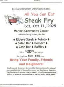 « All Events This event has passed. All You Can Eat Steak Fry October 11, 2025 @ 4:00 pm - 8:00 pm « October Alliance Meeting Mini Bowling Tournament & Brat Fry » Ribeye Steak ♦ Potato ♦ Salad Bar ♦ Dessert Cash Bar ♦ Raffles Bring your Family, Friends, and Neighbors! Contact any member to purchase advance tickets, or Pay at the Door. Add to calendar Google Calendar iCalendar Outlook 365 Outlook Live Details Date: October 11, 2025 Time: 4:00 pm - 8:00 pm Event Category: Activities Organizer Denmark Norsemen Venue Maribel Community Center 14905 Mulberry St. Maribel, WI United States + Google Map